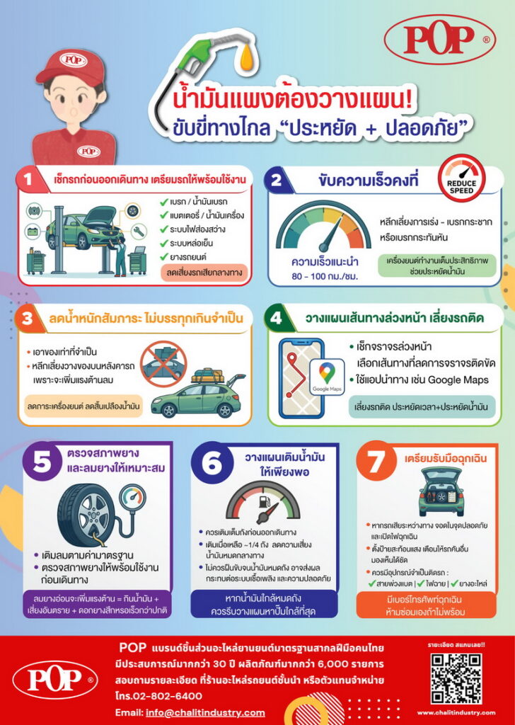ช่วงเทศกาลสงกรานต์ถือเป็นฤดูกาลแห่งการเดินทางของคนไทย หลายครอบครัวเลือกใช้รถยนต์ส่วนตัวเพื่อกลับภูมิลำเนาหรือท่องเที่ยวต่างจังหวัด อย่างไรก็ตาม ในภาวะที่ราคาน้ำมันปรับตัวสูงขึ้น การขับรถทางไกลในปัจจุบันจึงไม่ใช่เพียงเรื่องความสะดวกสบายเท่านั้น หากยังต้องคำนึงถึงทั้ง “ความประหยัดน้ำมัน” และ “ความปลอดภัย” เพื่อให้การเดินทางราบรื่นตลอดเส้นทาง ผู้ขับขี่จึงควรเตรียมความพร้อมของรถก่อนออกเดินทาง และปรับพฤติกรรมการขับขี่ เพื่อลดค่าใช้จ่ายและลดความเสี่ยงรถเสียระหว่างการเดินทาง