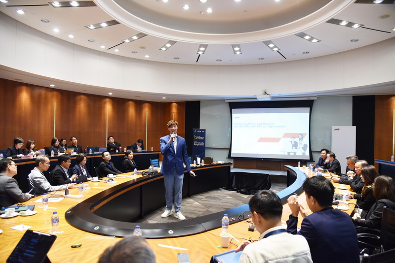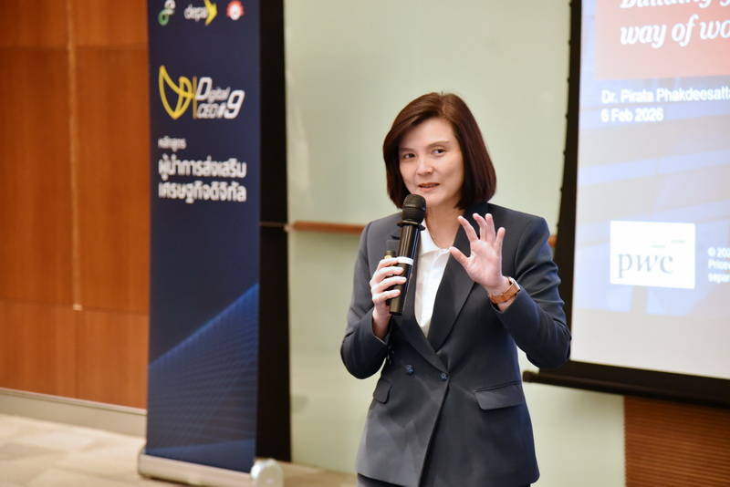 ในการนี้ คุณพิสิฐ ทางธนกุล ประธานกรรมการบริหาร บริษัท ไพร้ซวอเตอร์เฮาส์คูเปอร์ส เอบีเอเอส จำกัด (PwC Thailand) ได้มาต้อนรับผู้อบรมหลักสูตรผู้นำการส่งเสริมเศรษฐกิจดิจิทัลรุ่นที่ 9 พร้อมบรรยายพิเศษเรื่อง “29th Global CEO Survey : Leading through uncertainty in the age of AI” ต่อด้วยการบรรยาย “กลยุทธ์การพัฒนาคนในองค์กรรองรับยุคดิจิทัล” โดย ดร.ภิรตา ภักดีสัตยพงศ์ หุ้นส่วนสายงานที่ปรึกษา บริษัท ไพร้ซวอเตอร์เฮาส์คูเปอร์ส คอนซัลติ้ง (ประเทศไทย) จำกัด ในหัวข้อ “Navigating Global and Thailand Sustainability and Climate Opportunities” โดย คุณชยาธร ฉันท์เรืองวณิชย์ หุ้นส่วน PwC Thailand